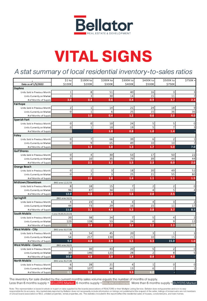 Alabama's Gulf Coast contains several real estate markets depending on location and price point – just to name a few factors. The graphic below shows real estate statistics for December 2021, the latest month available.