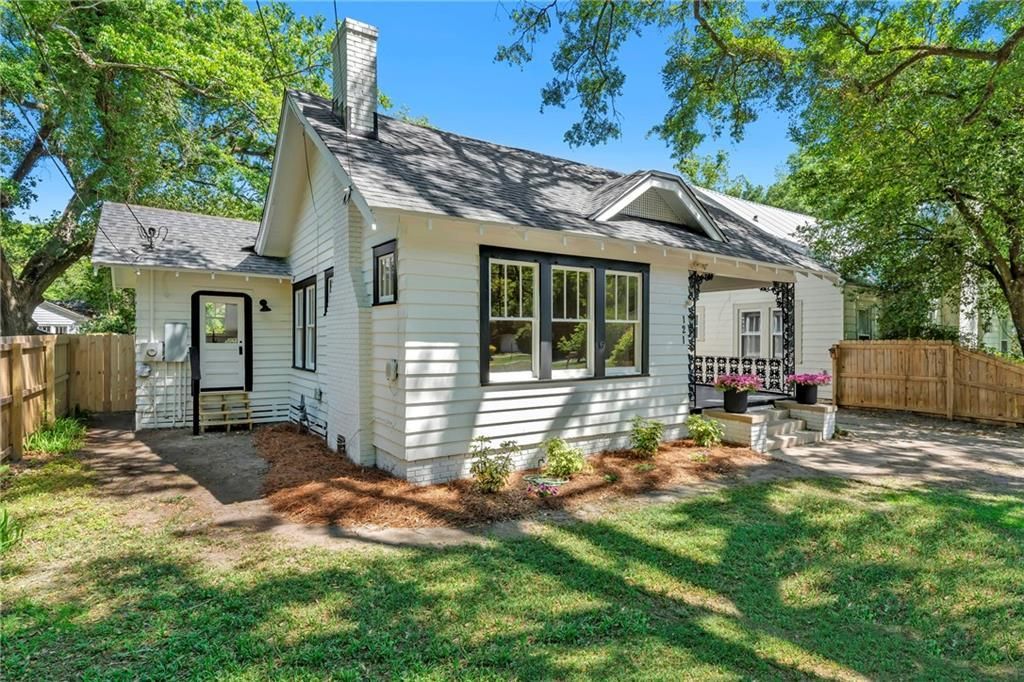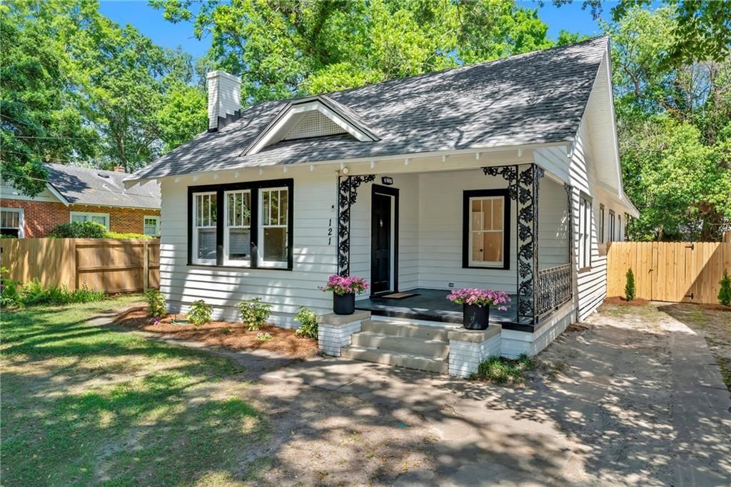 Welcome to 121 Westwood Street, a charming Midtown bungalow brimming with curb appeal. Freshly painted white siding paired with bold black trim creates an updated look, while the welcoming front porch offers the perfect spot for morning coffee or relaxing evenings. Thoughtful landscaping and mature greenery add to the inviting feel and make this home an instant standout from the street. Inside, you'll find refinished original wood floors throughout, a living/dining space with a decorative fireplace, a spacious kitchen with quartz countertops and new stainless appliances. Two guest bedrooms share an updated hall bath, while the primary suite is tucked away at the back of the home. The primary suite features a beautifully renovated bathroom with a walk-in shower, new vanity, laundry closet, and direct access to the back deck and patio. A versatile bonus room just off the primary suite offers multiple possibilities as a TV room, home office, playroom, or 4th bedroom. The fully fenced backyard provides a great space to unwind and entertain. New electrical wiring, new plumbing and lighting fixtures throughout, New Roof (2026) HVAC (2020) *Open House this Sunday April 19 from 2-4PM*
