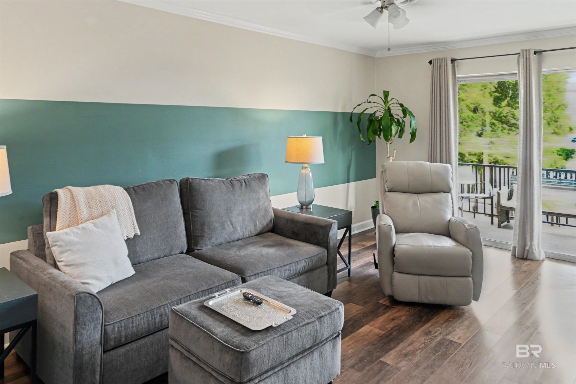Your Gulf Shores getaway is calling ? and this one checks every box. This beautifully updated 2-bed, 1-bath condo blends modern style with coastal charm, creating the perfect full-time home, vacation escape, or investment property. Step inside to find sleek LVP flooring, crown molding, and an updated kitchen featuring refreshed cabinets, upgraded countertops, and a matching tile backsplash that ties the whole space together. The open dining/living area includes a built-in workspace with custom wooden shelving, giving you the perfect spot for remote work, planning beach days, or showcasing décor. The bathroom has been thoughtfully upgraded with a new vanity and a fully retiled walk-in shower that feels spa-fresh. Both bedrooms offer comfortable layouts and great natural light. Slide open the living-room doors and step onto your private balcony/patio overlooking the sparkling community pool and common area. Whether you're sipping morning coffee or unwinding after a day on the sand, this view delivers instant relaxation. The pool and shared spaces are wrapped in a privacy fence, creating a peaceful, tucked-away atmosphere. Located on the 2nd floor, this unit offers extra privacy and a better vantage point ? without sacrificing convenience. If you've been waiting for a move-in-ready condo in Gulf Shores with style, updates, and amenities, this is the one that makes you say 'yes. Opportunities like this don't sit long. Buyer to verify all information during due diligence.