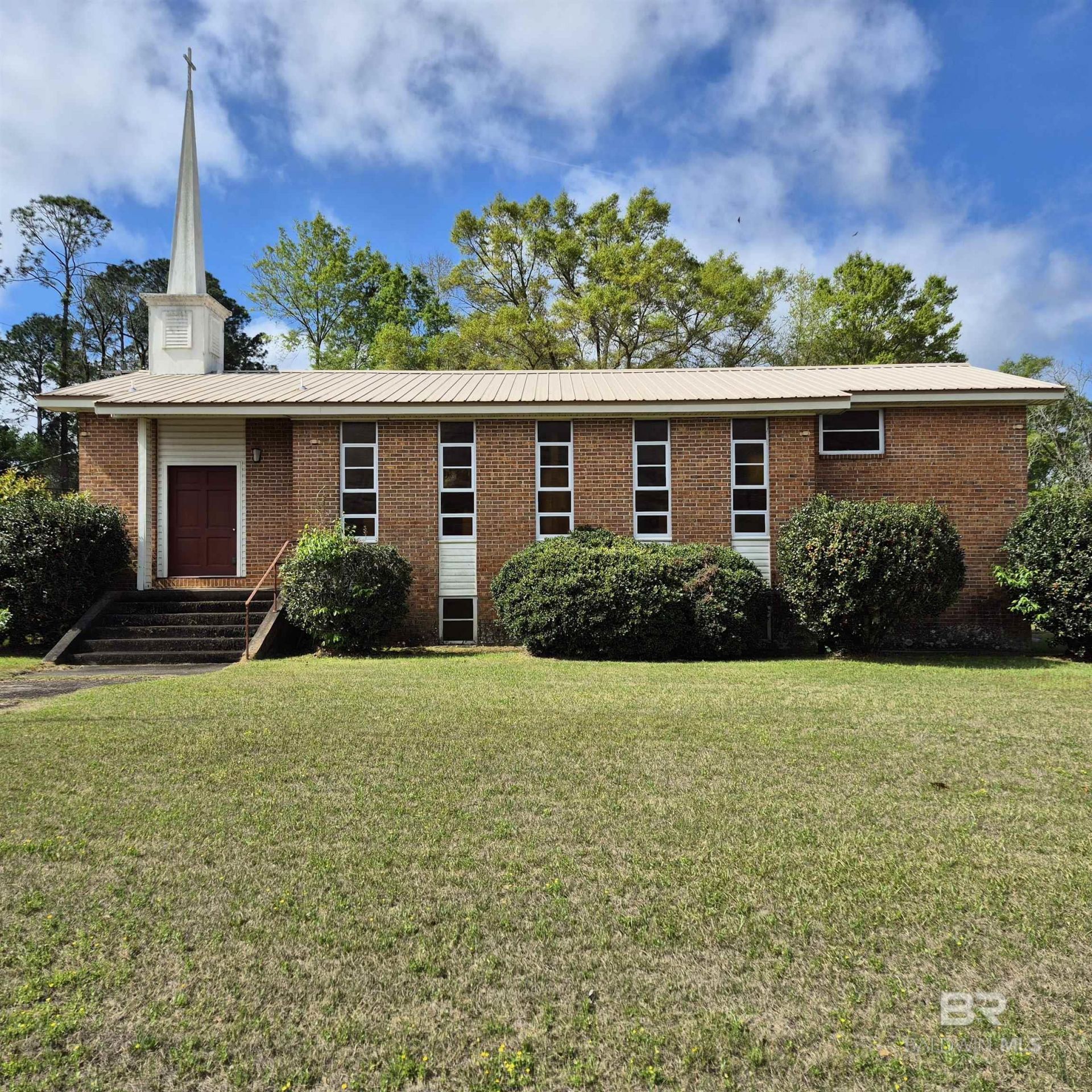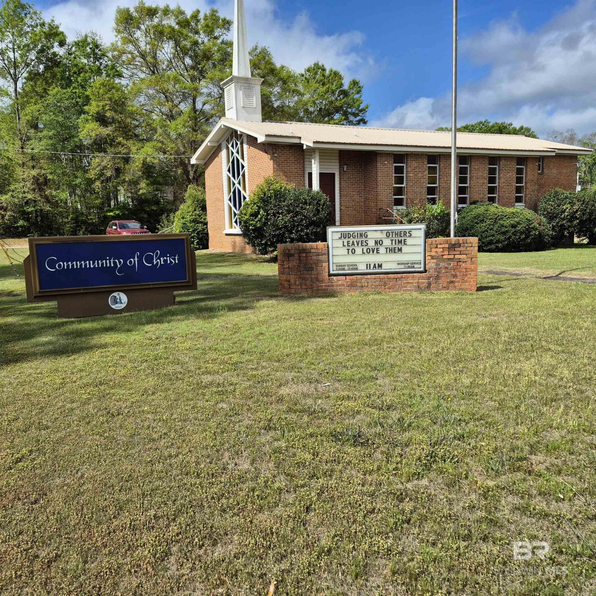 Located in downtown Evergreen, this unique property offers approximately 1.16 acres and a building rich in character with flexible potential for a variety of uses. The main gathering space features seating for approximately 100 and will remain furnished with pews, pulpit, and sound system. The lower level includes a spacious gathering room, full kit Additional Items to remain include kitchen appliances, baptismal tub, and additional equipment/materials. An interchangeable exterior sign will also remain with the property. Beautiful stained-glass windows add distinctive architectural detail, filling the space with natural light and contributing to the property's unique character and presence in the downtown area. The property consists of two lots, offering additional space that may accommodate parking and future expansion opportunities. Buyer to verify all information during due diligence.