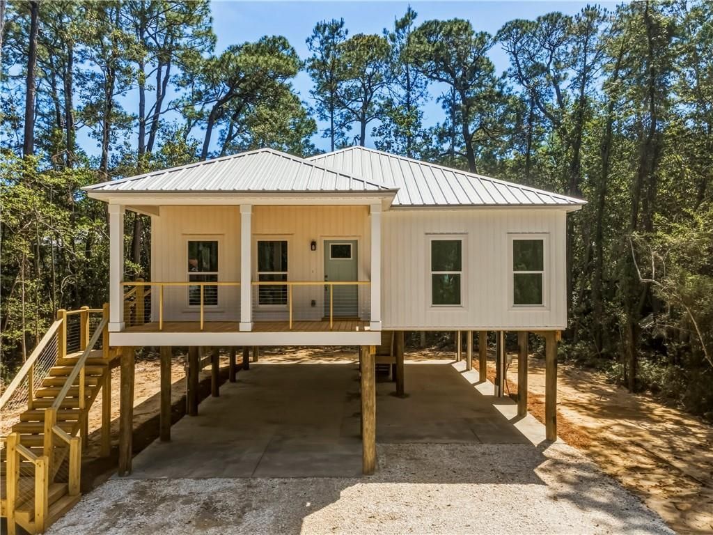 The living is laid back and easy on Dauphin Island, and there's nothing better than a new house to start living your dream! This GOLD FORTIFIED, NEW CONSTRUCTION home has everything you need for full-time living or a weekend retreat. You'll love the 9-foot ceilings, covered front porch, and the spacious primary bedroom. The kitchen is a chef's dream with a long island for food prep, granite countertops, subway tile backsplash, stainless steel appliances, and beautiful white custom cabinets. The kitchen is open to the great room with a vaulted ceiling and provides ample space for large families and entertaining. The master bedroom has a large attached bath, double sink vanity, separate shower, and his and hers closets. The laundry room is located in the master bath for extra convenience and even more closet space. No need to get wet when you park under the house on the concrete pad and use the covered staircase to enter your new home. Guests will come up from the frontside staircase that leads to the covered porch. Plenty of room underneath for grilling, hammocks, swings, and picnic tables, plus parking and space for bicycles, some boats, and storage under the stairs for all your beach toys. You'll enjoy all the wonderful things the Island has to offer, such as the white sandy beaches, the Audubon Bird Sanctuary, the boat launch at Billy Goat Hole, Fort Gaines, the Alabama Aquarium at the Dauphin Island Sea Lab, and the Mobile Bay Ferry to Fort Morgan. This property is conveniently located near the island's long bike path and is just a short golf cart ride or bike ride to all local restaurants and shops. If you've always dreamed of living on an Island, here is the perfect opportunity at a wonderfully affordable price. Make your way today to the official Sunset Capital of Alabama. All information provided about the property, including but not limited to square footage, is deemed reliable but is not guaranteed and should be independently verified.