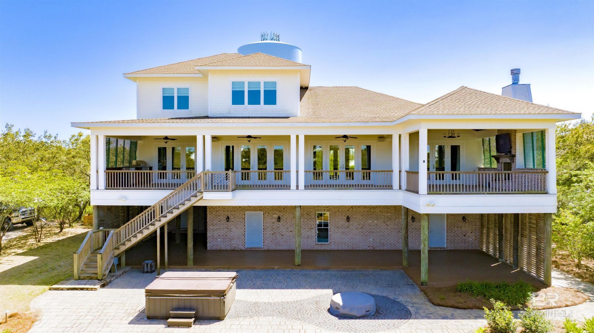 Gold Fortified custom-built 5-bedroom home located in the gated community of Ono Island, offering beautiful water views. Situated on a unique canal-front lot, this property is designed for both comfort and coastal living. The spacious primary suite features custom cabinetry, a luxury bath with walk-in shower, garden tub, and an oversized walk-in closet. The recently updated gourmet kitchen includes high-end appliances and thoughtful upgrades for cooking and entertaining outdoor living is a highlight of this home with approximately 3,000 square feet of covered porches featuring an outdoor kitchen, dining area, and living space with a fireplace Great for enjoying the coastal setting. The large backyard offers additional space for relaxation and gatherings. Additional features include tile flooring throughout and expansive garage space with high ceilings and approximately 2,000 square feet, complete with custom flooring and ample parking.Recent improvements include a whole-house water filtration system, paver additions to the driveway and backyard, lighted driveway and walkway leading to the boat dock, propane fire pit, hot tub, updated front door, geothermal HVAC system on the main floor, Trex front steps, kitchen appliances, renovated laundry room with new sink, granite countertops and fixtures in the primary bath, commercial-grade water heater with instant hot water, elevator battery pack, and propane outdoor grill. The private boat dock includes a 10,000 lb boat lift, making access to the water convenient and easy.Buyer to verify all information during due diligence. Schedule a showing today! Buyer to verify all information during due diligence.
