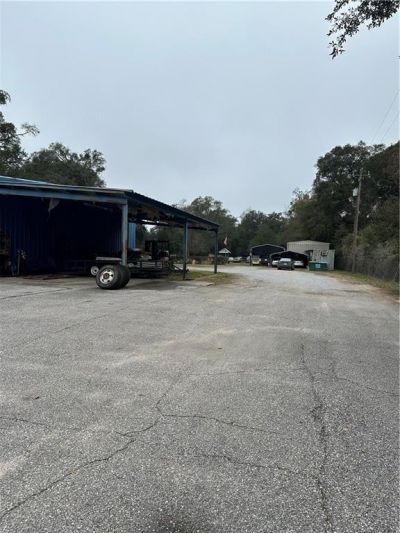 Versatile commercial property located in Saraland, AL, situated on a 126 x 440 lot. Previously operated as a wrecker and mechanic shop, the main building features three 10x12 roll-up doors, a vehicle lift, and a large covered work area attached to the building. An additional large building includes a kitchen, living room, and bedroom, offering flexible use options. Ideal setup for an automotive or mechanic business. Seller to reserve small storage buildings.