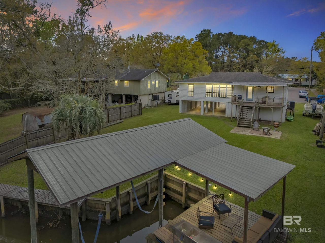 Raised cottage in Mobile's Peninsula district offering three bedrooms and two bathrooms right on Dog River, built for tranquil waterfront living on the Gulf Coast. Outdoor features include a boathouse with lift, dock area, and fish cleaning station with sink. The property is located along a navigable channel of Dog River near Perch Creek with access to a broader waterway connecting to local marinas, yacht clubs, and waterfront dining. Currently utilized as a profitable short-term rental, the home's layout lends itself well to hosting, with open-concept living spaces and a flexible lower-level bonus area that includes an unfinished half bathroom. The primary bedroom offers an en-suite bath with a glass-door shower and chic double vanity with the two additional bedrooms situated on the opposite side of the home. With close proximity to Mobile Bay and convenient access to the city, this property combines lifestyle, flexibility, and long-term value in a well-positioned waterfront setting. Buyer to verify all information as deemed important. Buyer to verify all information during due diligence.