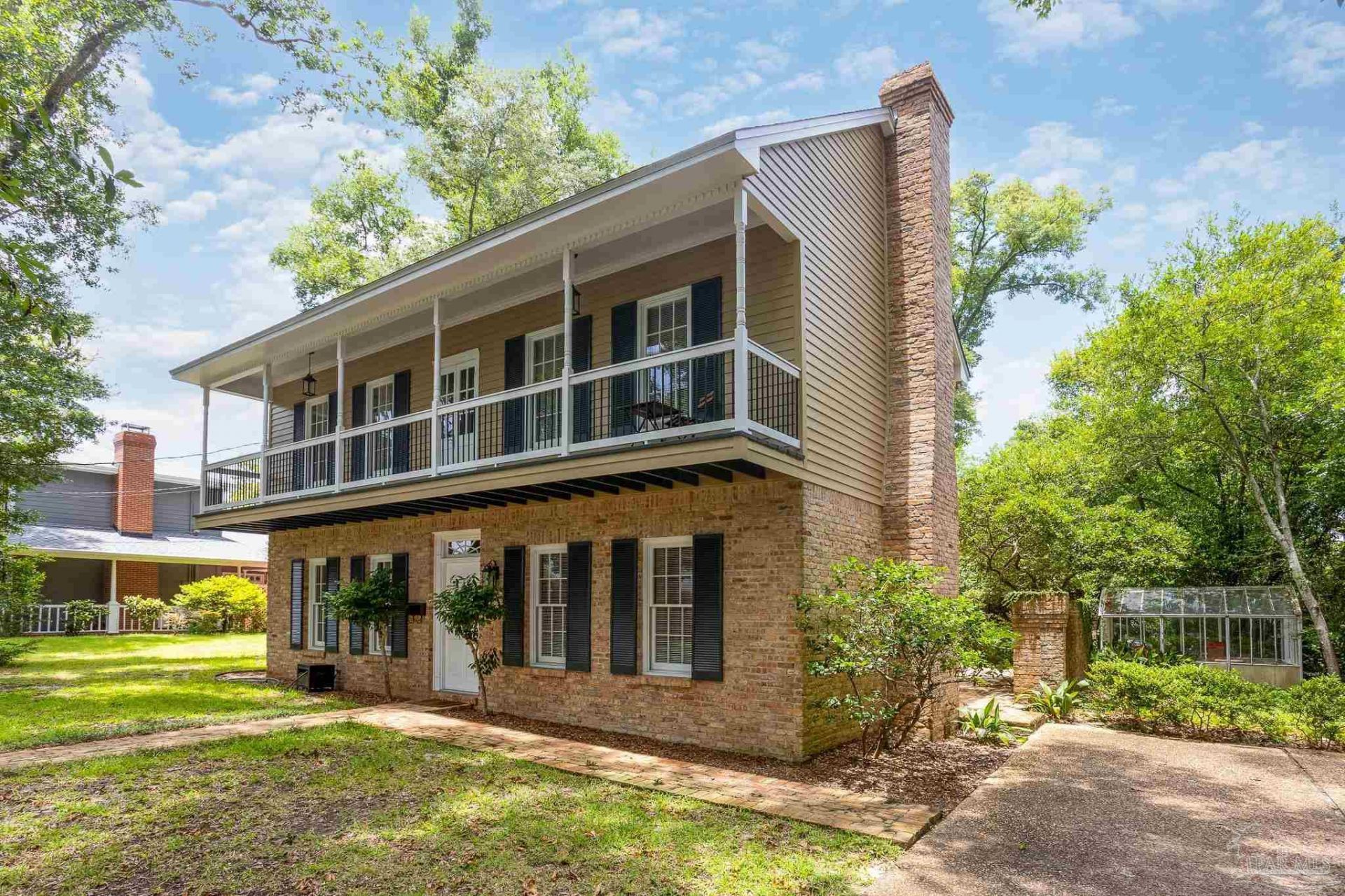 This charming 3BD/3.5BA two-story home offers timeless Southern character paired with spacious, comfortable living in a beautifully shaded setting. Nestled among mature trees, the property welcomes you with a classic brick facade on the lower level, light siding above, and a full-length second-story porch that creates a striking first impression. A brick walkway leads to the front entrance, while the private backyard features a brick patio, lush landscaping, and even a quaint greenhouse, perfect for relaxing or entertaining outdoors. Inside, the home features warm hardwood floors and a bright, inviting layout. The main living area is filled with natural light from large windows. A separate downstairs area provides a cozy retreat, complete with rich wood paneling, built-in shelving, and a fireplace, offering the perfect space for relaxing evenings. The kitchen offers a functional layout with ample cabinetry, modern appliances, and updated flooring, providing plenty of space for cooking and everyday use while maintaining its traditional charm. Upstairs, the bedrooms are generously sized with hardwood floors and ceiling fans, with the master bedroom featuring French doors that open directly onto the expansive upper balcony, creating a peaceful indoor-outdoor connection. Bathrooms have been thoughtfully updated, including a stylish walk-in glass shower with contemporary tile finishes. The standout feature of the home is the spacious second-floor porch that leads off of the master bedroom, offering a serene place to unwind while overlooking the tree-lined surroundings. Blending classic details with modern updates, this home provides a unique combination of charm, space, and privacy, ideal for those seeking a distinctive and comfortable place to call home. This property requires participation in the MSPM Resident Benefit Package for an additional monthly fee. Additional information on this program can be found upon submission of application.