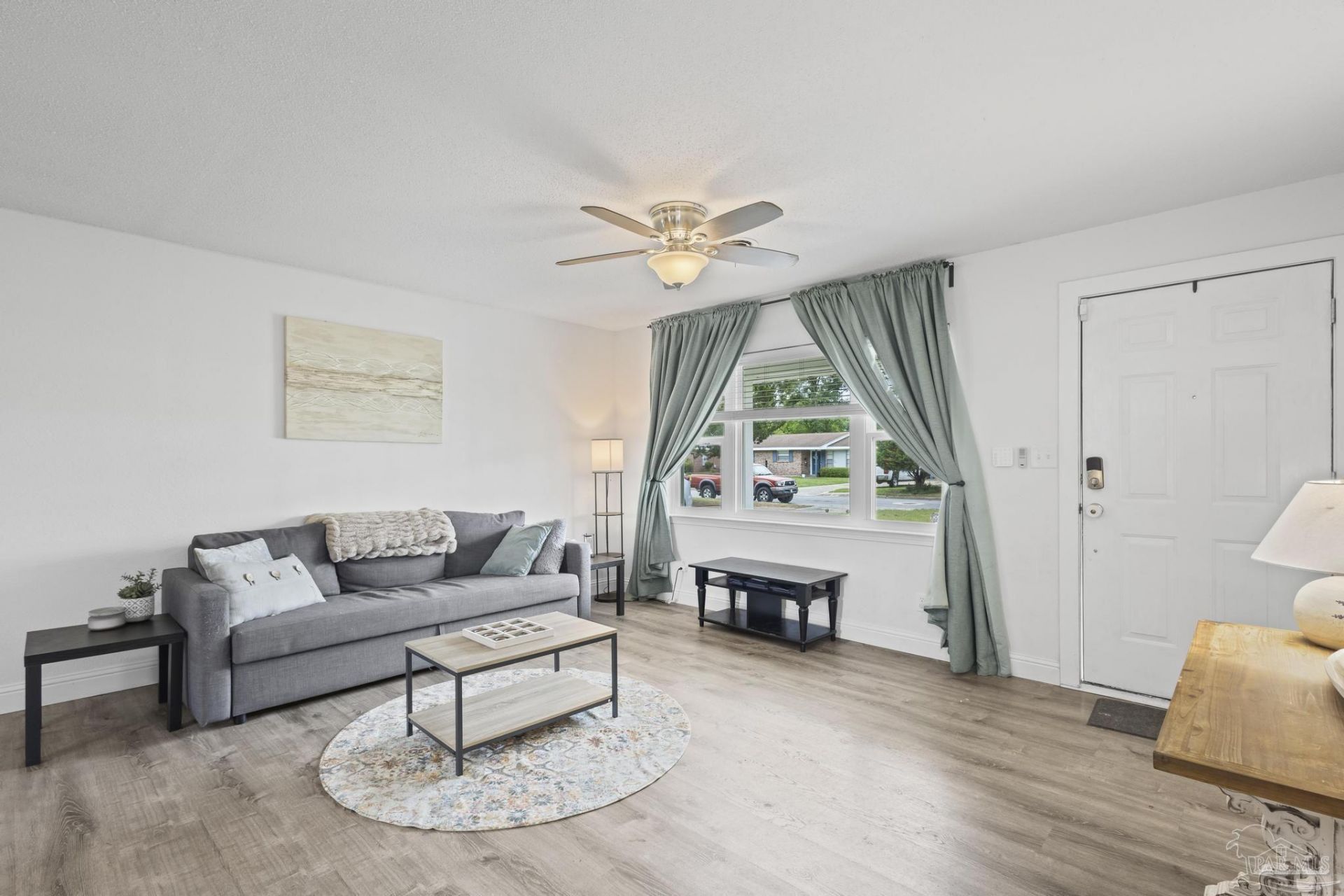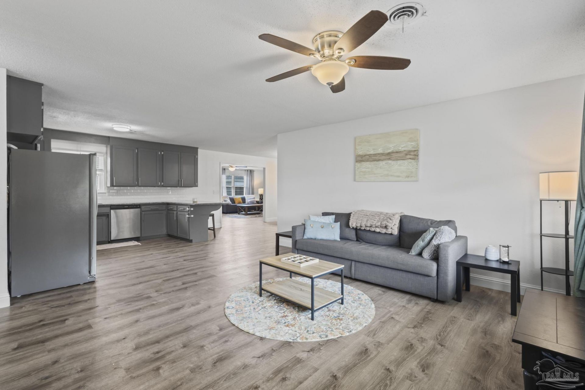 Welcome to the Belvedere Park Neighborhood! As you step inside, you'll be greeted by a warm and inviting living room, with a split floor plan that is open to the kitchen, dining room and greatroom. The adjacent dining area offers ample space for family meals or casual gatherings. The kitchen, featuring modern appliances and plenty of granite counter space, is a chef's dream. The primary bedroom boasts an en-suite bathroom with double vanity, 2 large closets, shower and lots of cabinets. You'll also find two generously sized bedrooms, each providing a peaceful retreat and generous guest bath in the hall. A versatile bonus room on the second floor offers endless possibilities, whether you envision it as a home office, a guest room, or a hobby space and features built-in bunks and shelving - good for books, video games, movies or whatever you desire. The fenced-in backyard provides a private oasis for enjoying the Florida sunshine and the workshop has power and is a blank canvas for whatever you choose to use it for. While this home doesn't have a garage, it does feature the workshop, providing ample space for your DIY projects. Imagine grilling out with friends, tending to your garden, or simply relaxing on the patio. One of the highlights of this property is its proximity to Belvedere Park - just 2 blocks over. Convenient location near schools, shopping, and dining - don't miss this opportunity to make this charming home your own. Schedule a showing today and experience the Pensacola Lifestyle. Roof 2019, Gas 40 gal Water Heater 2019, windows 2019, hurricane shutters 2019, ac 2013. ASSUMABLE VA MORTGAGE 4.25%!!! MOTIVATED SELLERS!