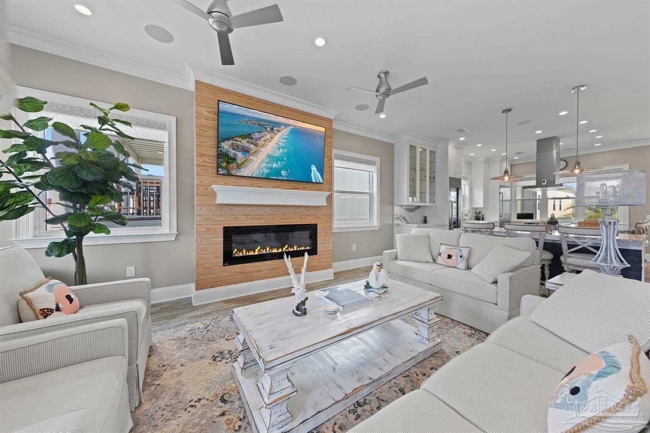 Are you ready to LIVE the BEACH LIFE? This STUNNING 2020 custom built and meticulously maintained luxury 3 BR/2.5 Bath home offers the perfect blend of latest building standards, comfort and breathtaking views, making it an ideal sanctuary for worry-free relaxation and entertainment. This FULLY FURNISHED home, with top-of the-line indoor and outdoor furniture, boasts spacious and beautifully appointed living areas designed with style and functionality in mind. It is equipped with modern amenities to enhance your lifestyle, including a custom-designed elevator, Geothermal cooling and heating, energy-efficient foam insulation, smart home technology, whole home surround sound, remote controlled window shades, LED lighting, keyless locks, security system and a three-car garage. High ceilings, large windows, and an open floor plan create a bright and airy atmosphere, perfect for entertaining guests or enjoying quiet family evenings. The state-of-the-art two island kitchen is a chef's delight, featuring Thermador smart appliances, gas stove, wine cooler, two ovens, warming drawer, quartz countertops, and custom cabinetry. The home includes three bedrooms, each designed as a private retreat with ample space, natural light, and elegant finishes. The master suite offers a spa-like experience with a walk-in closet, a lavish en-suite bathroom with dual vanities, elegant lighting and a large two-head shower. Step outside to your private outdoor oasis, complete with a spacious deck and lush landscaping with automatic lighting. This area is perfect for sunbathing, hosting barbecues, or simply relaxing with a good book while enjoying the gentle sea breeze. Nestled in the serene community of Grand Navarre on the west end of Navarre Beach, this home provides views of Santa Rosa Sound with easy access to pristine white-sand beaches and the crystal-clear waters of the Gulf. Enjoy the best of coastal living with nearby restaurants, shopping, and recreational activities.