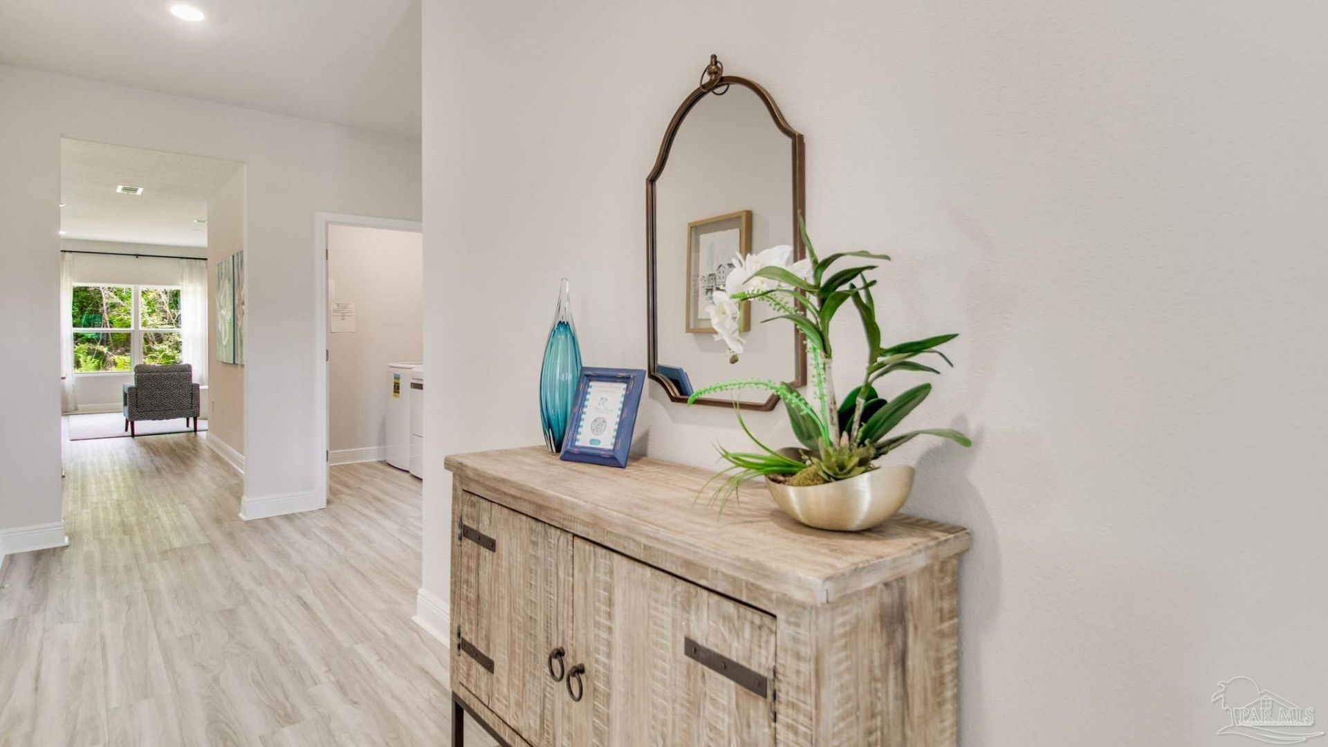 Welcome to 8662 Russellcross Blvd! Just under 1,800 square feet, this beautiful home offers 4 bedrooms with 2 bathrooms, a 2-car garage, and a seamless open layout. As you enter, you are met with an inviting foyer with storage, a full guest bathroom, and a hall leading to the 2nd and 3rd secondary bedrooms. Further down the hall provides access to the 2-car garage, storage, and your laundry room. Privately tucked away in this area is also the additional 4th bedroom, ideal for guest stays or a private office. Further into the home, you will find the open layout of the living area and beautiful kitchen. The kitchen includes quartz countertops, stainless steel appliances, stylish shaker cabinetry, and center island. With natural light and nearby covered patio access, the living and dining area are integrated perfectly to complete this relaxing atmosphere. The primary bedroom is tucked away off the living area and includes an ensuite bath and large walk-in closet. In addition, this home is built with our Smart Home technology package, designed to bring the ease and convenience of life right to your fingertips. Situated off Gulf Beach Hwy, this community offers convenient access to NAS Pensacola, lively downtown, and the beautiful shores of Perdido Key and Pensacola Beach!