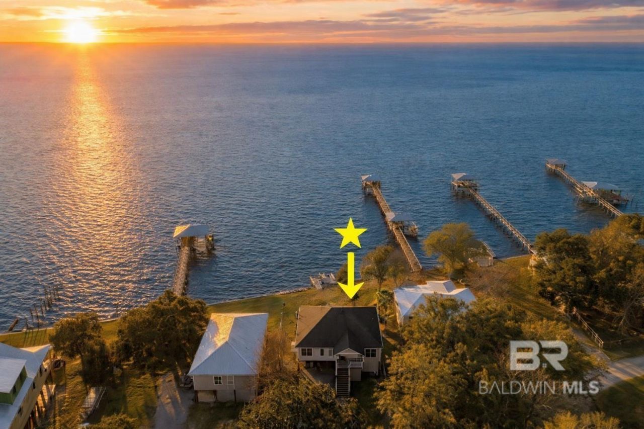 Beautifully updated waterfront cottage offering 75 feet of water frontage, a private pier, and unforgettable sunset views. Located on the east side of Mobile Bay in the private and quiet community of Sunset Shores. This thoughtfully upgraded 2-bedroom, 2-bath home is designed for relaxed coastal living with seamless indoor-outdoor flow and exceptional versatility. Inside, the open living area features a stunning new bead board accent wall with a gas fireplace, creating a warm and inviting focal point. The kitchen has been refreshed with all new stainless steel appliances, granite countertops, and modern fixtures, perfect for entertaining or everyday living. Both bathrooms feature granite countertops and updated finishes. The home offers two true primary suites, each with its own private bathroom and direct access to the expansive back porch. The living room also opens to the porch, which spans the entire length of the home, partially screened for comfort and partially open to enjoy bay breezes and panoramic water views. Recent improvements include new interior, new furnishings, new outdoor furniture, a new gas fire pit, new dishwasher, and a newly constructed seawall and pier, adding both style and peace of mind. The private pier provides easy water access for boating, fishing, kayaking, or simply enjoying sunsets over the water. Downstairs offers excellent functionality with ample covered parking, a screened area, additional storage, and a bathroom, plus the potential to convert part of the space into a guest suite, hobby room, or additional living area. This waterfront retreat delivers comfort, charm, and flexibility, ideal as a primary residence, second home, or investment opportunity. Easy boating access to Fort Morgan, Dauphin Island, and Onward To The Gulf. Rare opportunity to own a move-in-ready home with direct water frontage, private pier, and expansive outdoor living spaces. Buyer to verify all information during due diligence.